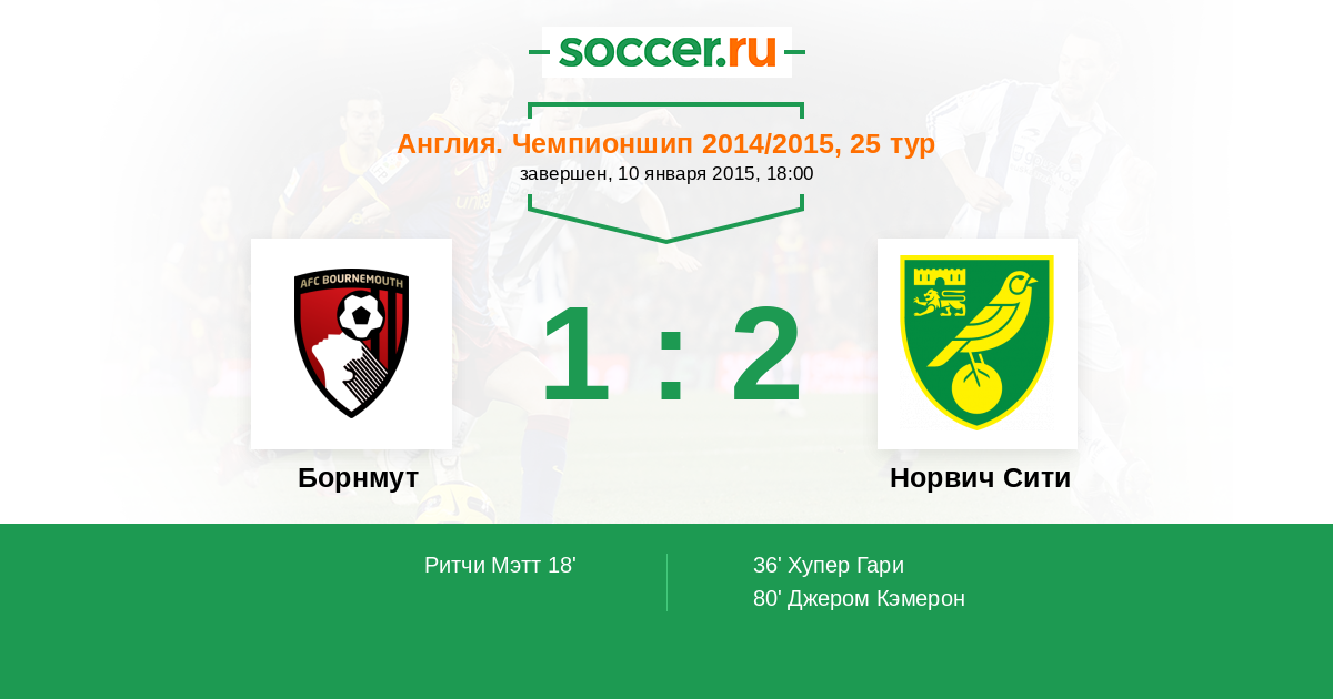 Протокол матча Борнмут против Норвич Сити