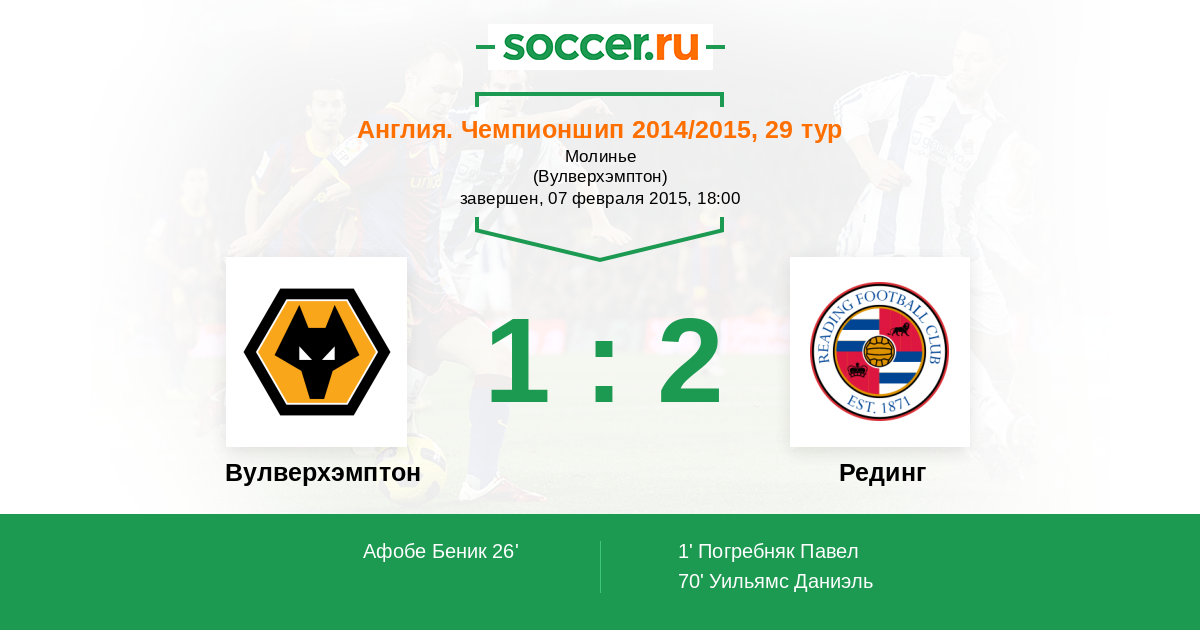 Протокол матча Вулверхэмптон против Рединг