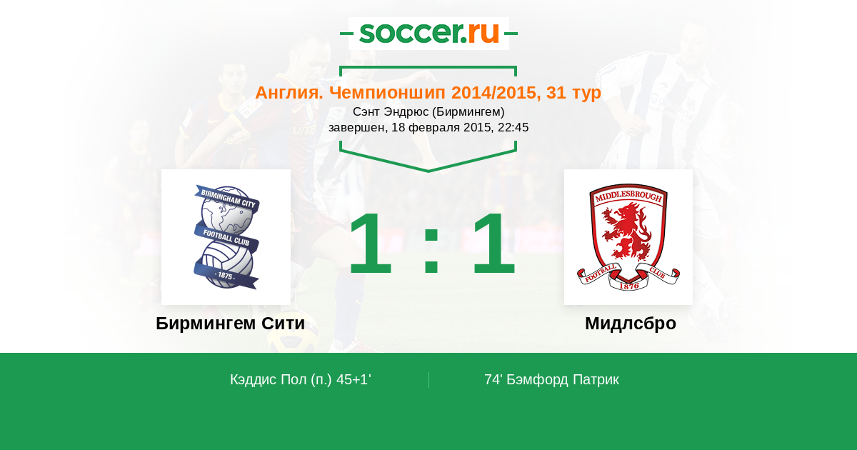 74' (1:1) Бэмфорд Патрик (23) (Лидбиттер Грант (7))