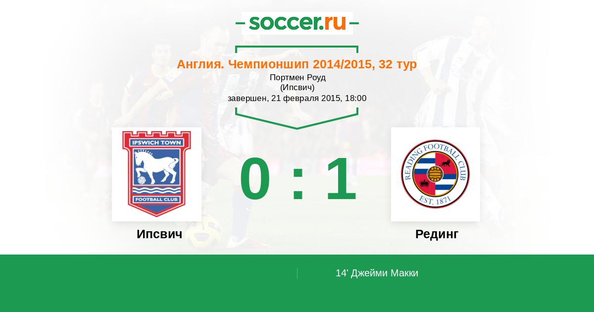 14' (0:1) Джейми Макки (19) (Погребняк Павел (7))
