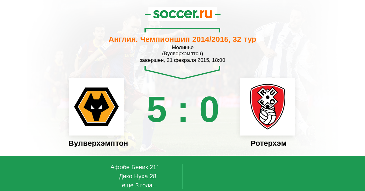 Протокол матча Вулверхэмптон против Ротерхэм