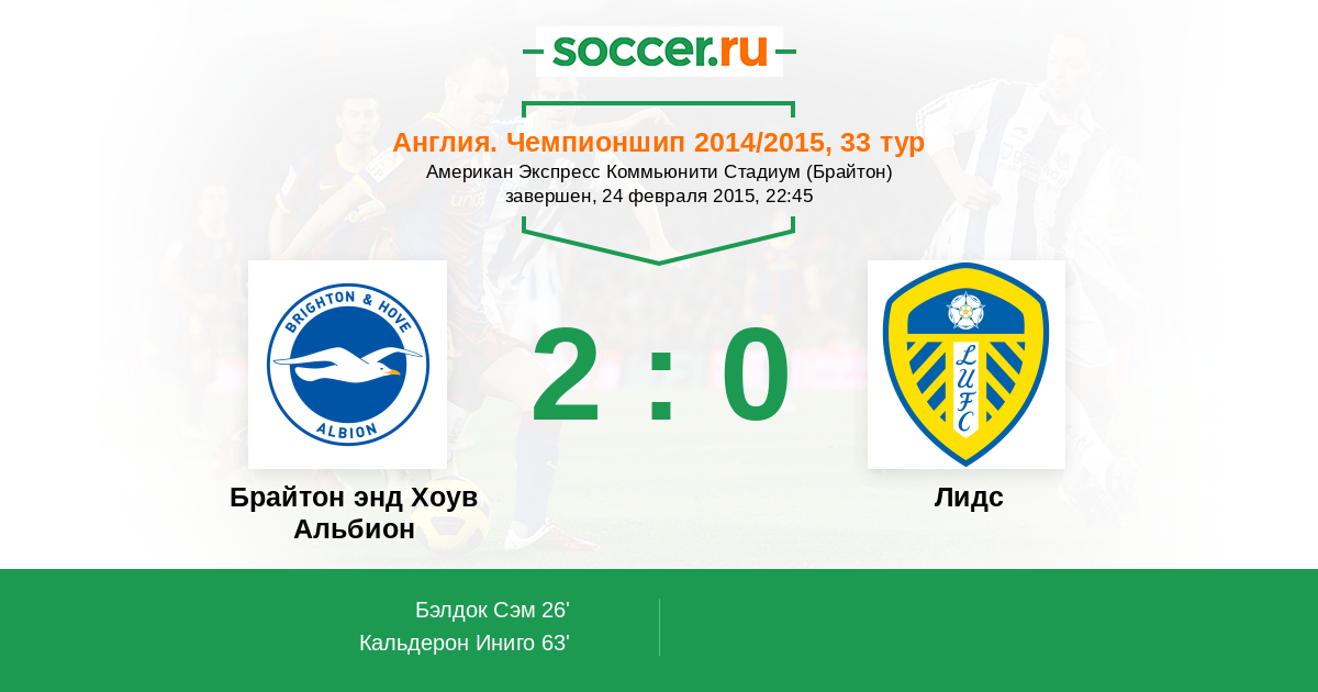 Протокол матча Брайтон энд Хоув Альбион против Лидс