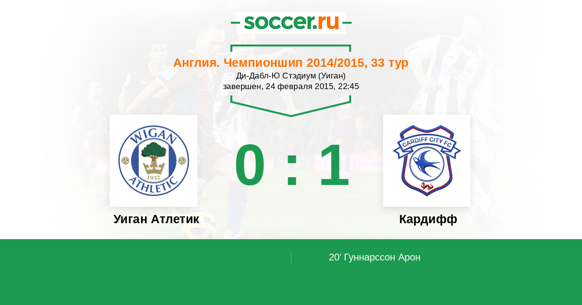 Протокол матча Уиган Атлетик против Кардифф