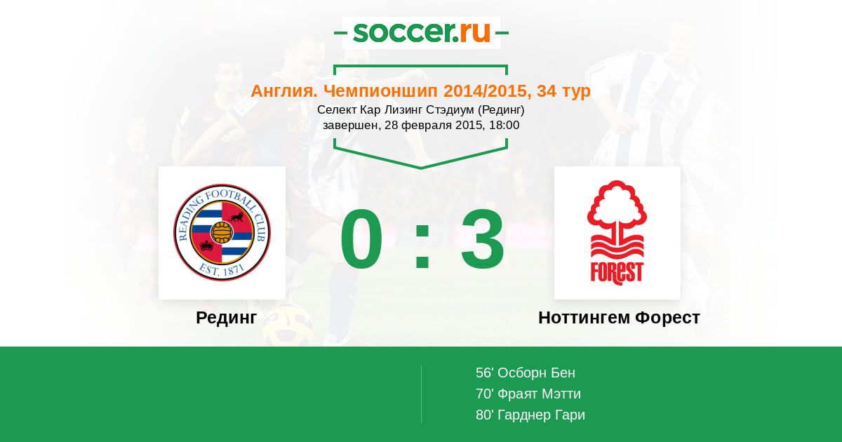 Протокол матча Рединг против Ноттингем Форест