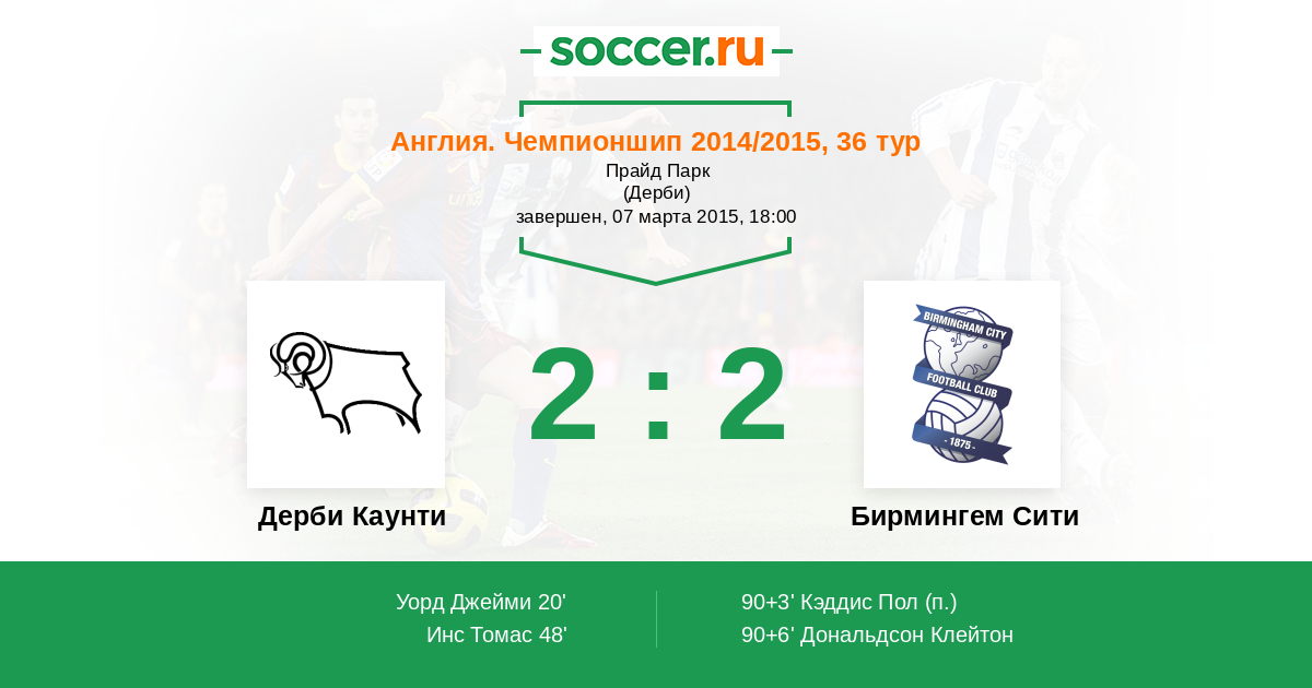 Протокол матча Дерби Каунти против Бирмингем Сити