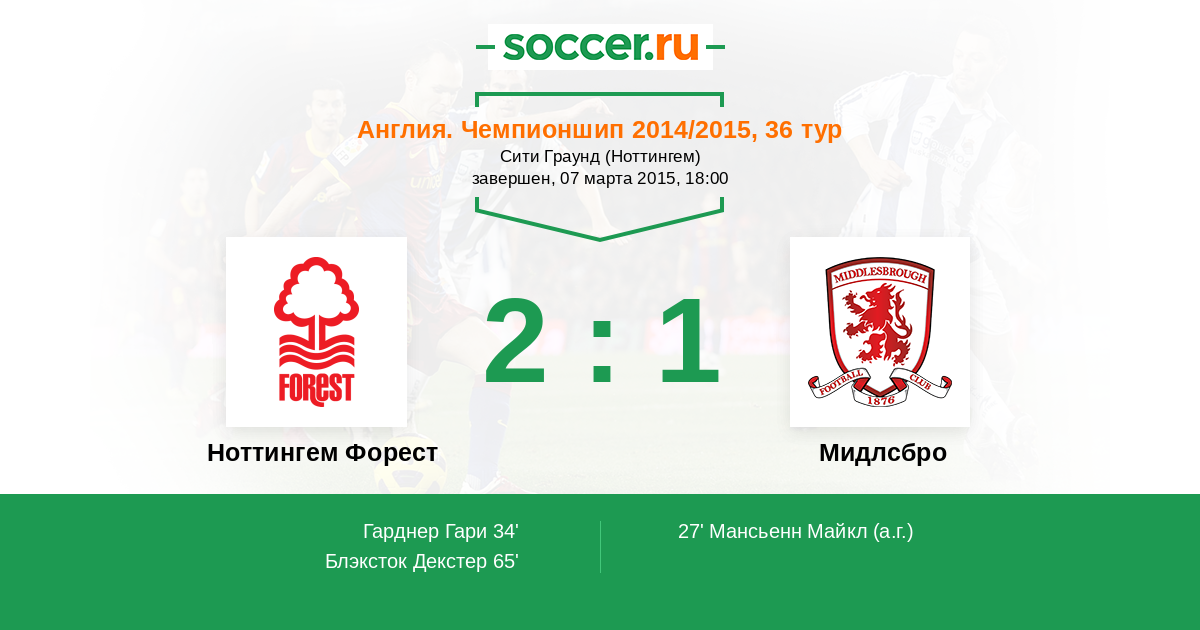 Протокол матча Ноттингем Форест против Мидлсбро