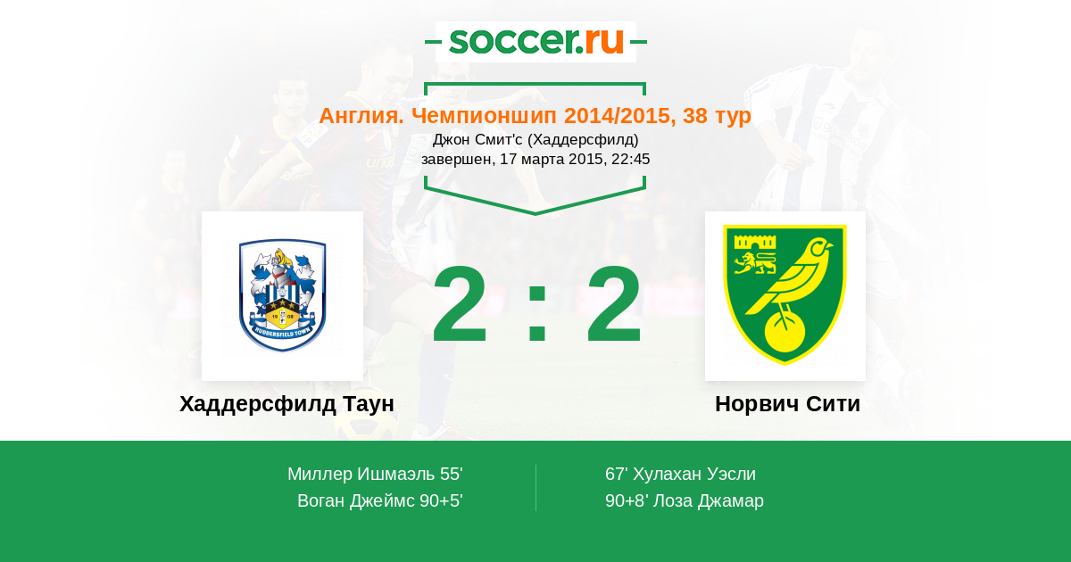 Протокол матча Хаддерсфилд Таун против Норвич Сити