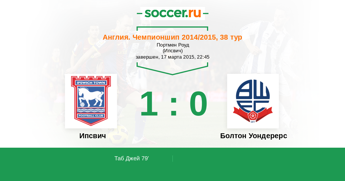 Протокол матча Ипсвич против Болтон Уондерерс