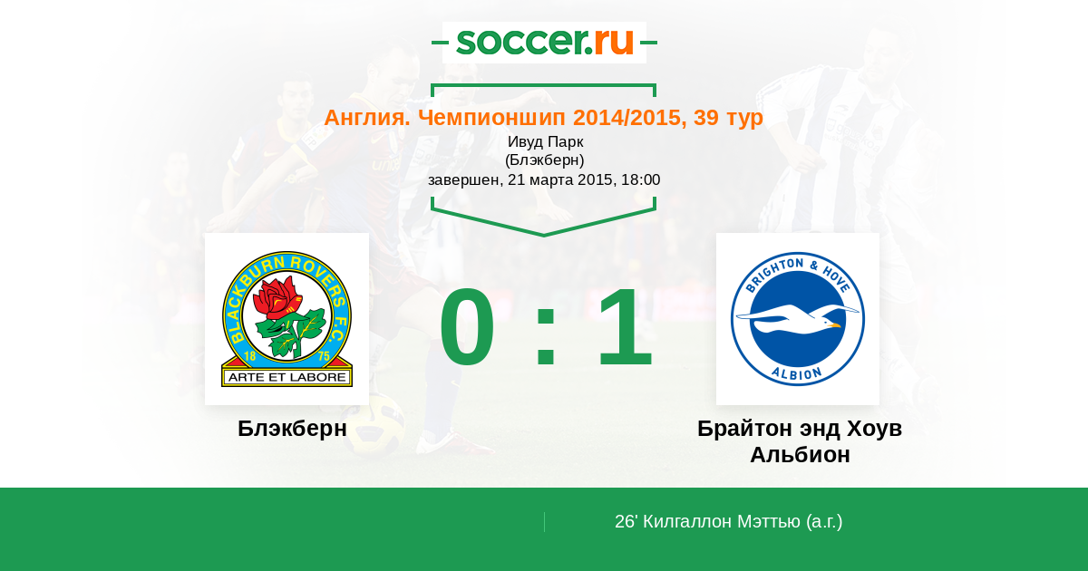 Протокол матча Блэкберн против Брайтон энд Хоув Альбион