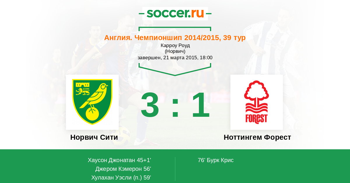 Протокол матча Норвич Сити против Ноттингем Форест