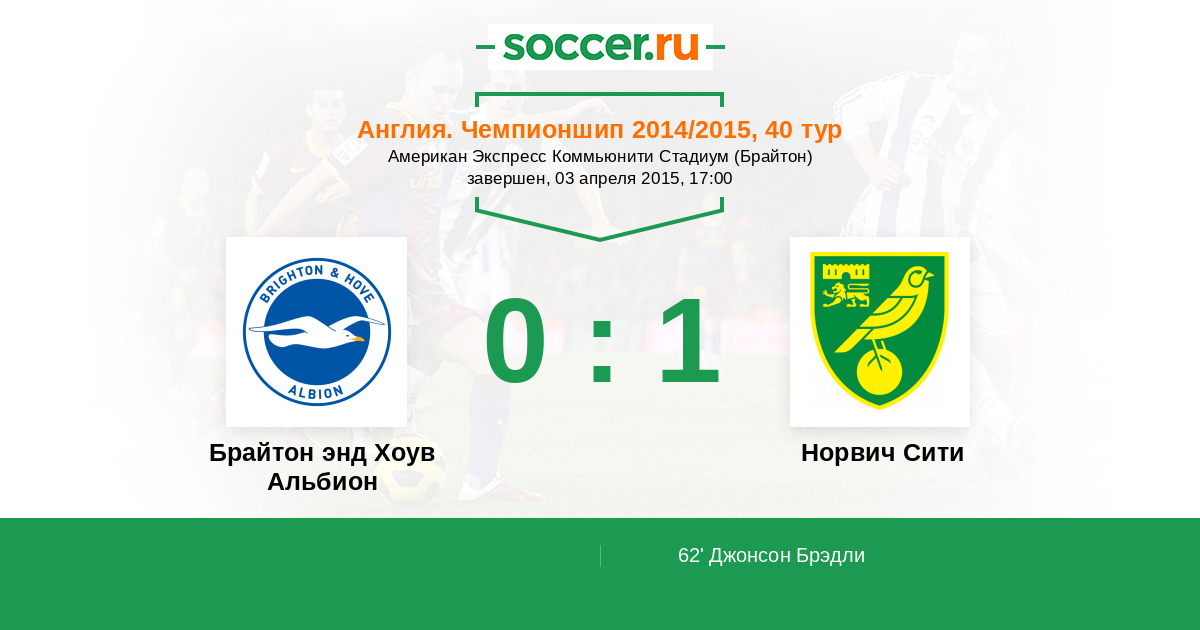 Протокол матча Брайтон энд Хоув Альбион против Норвич Сити