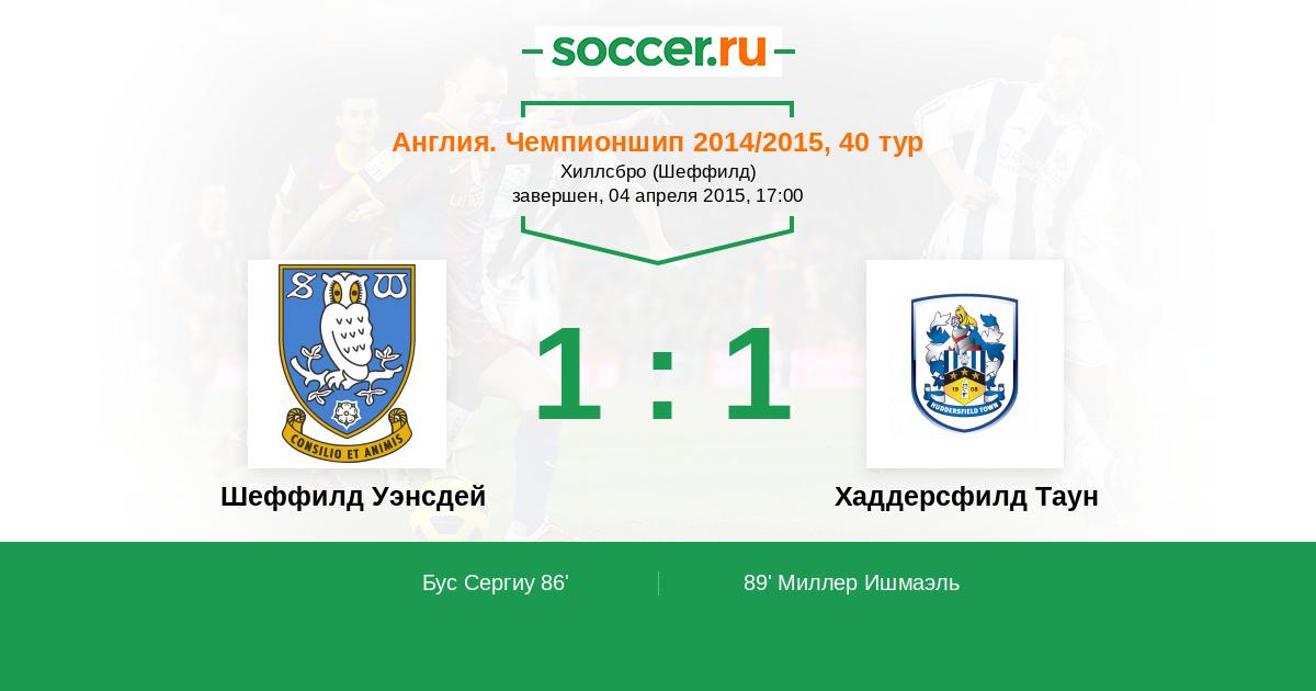 Протокол матча Шеффилд Уэнсдей против Хаддерсфилд Таун