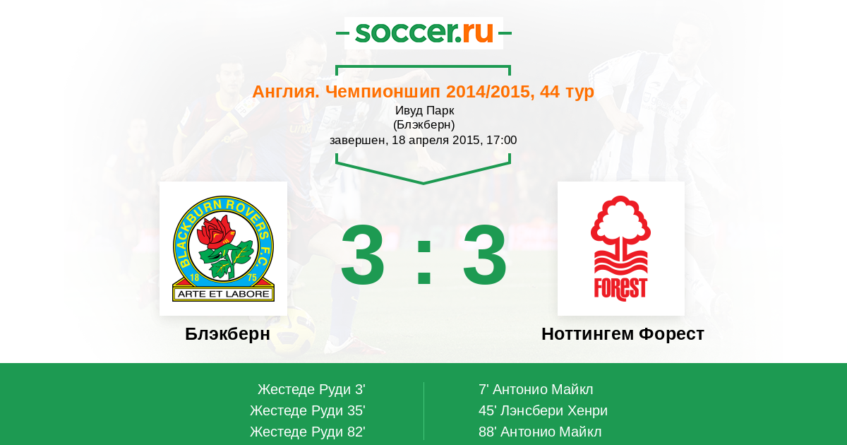 Протокол матча Блэкберн против Ноттингем Форест