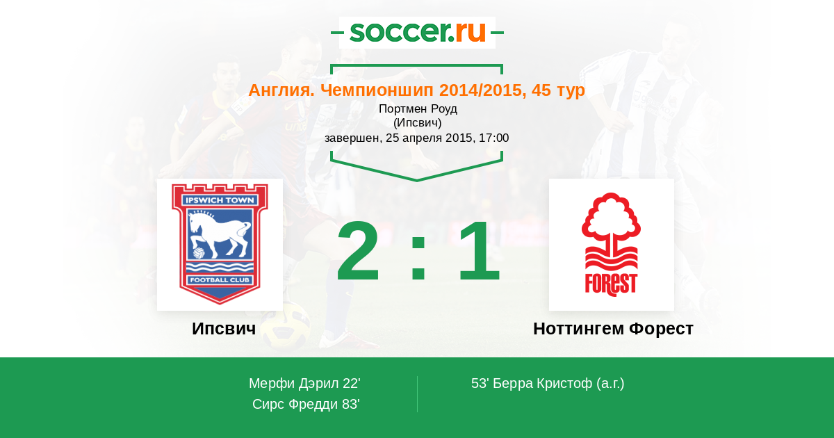 22' (1:0) Мерфи Дэрил (9) (Сирс Фредди (20))