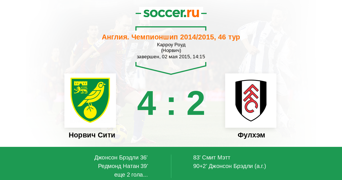 Протокол матча Норвич Сити против Фулхэм