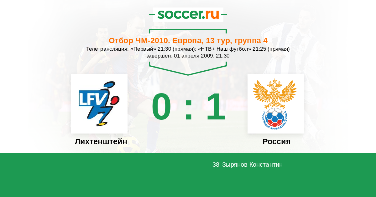 Протокол матча Лихтенштейн против Россия