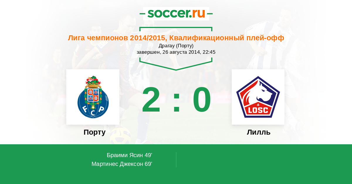 Протокол матча Порту против Лилль