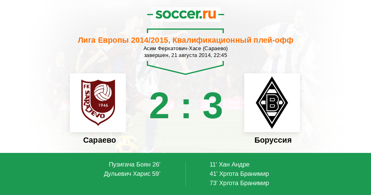 Протокол матча Сараево против Боруссия