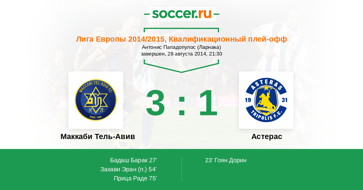 Протокол матча Маккаби Тель-Авив против Астерас