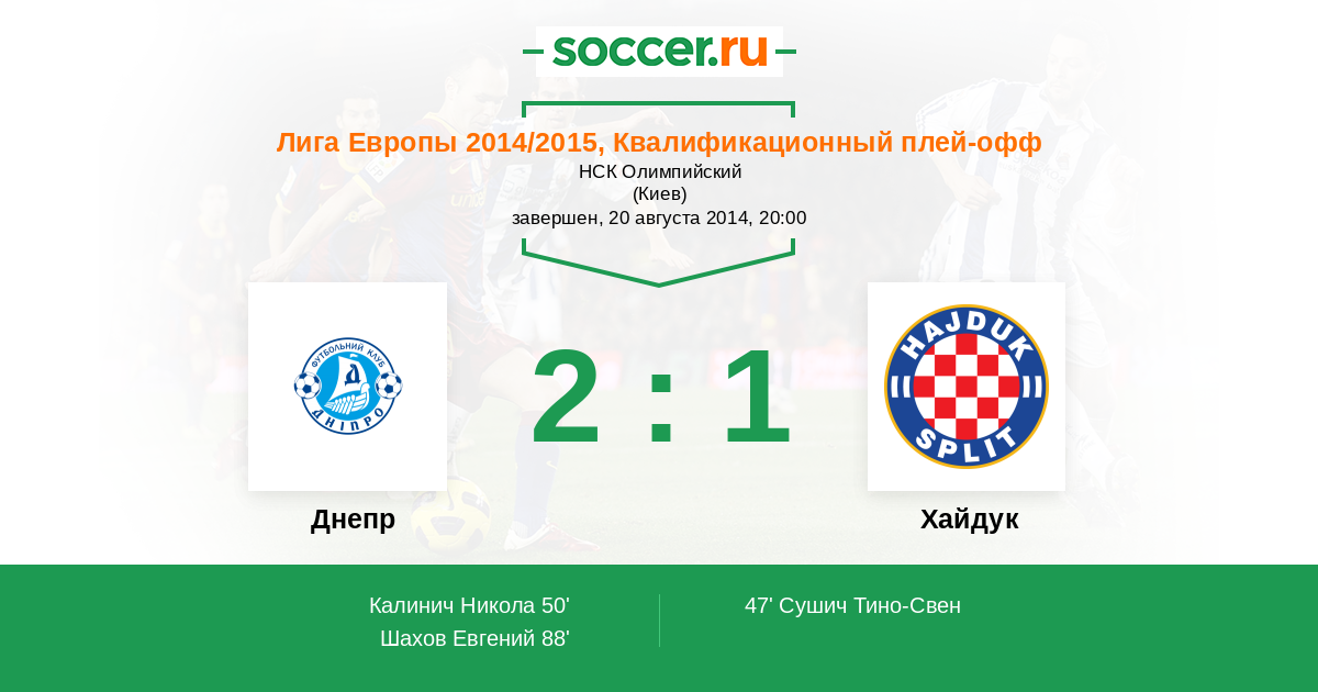 Протокол матча Днепр против Хайдук