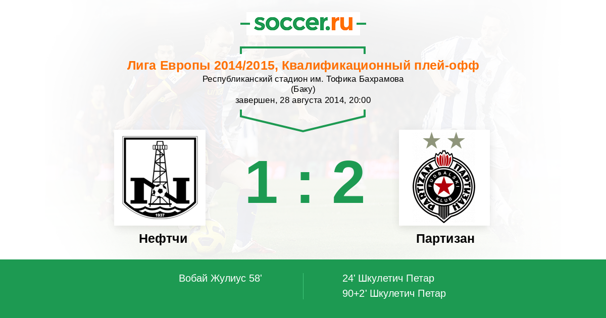 Протокол матча Нефтчи против Партизан