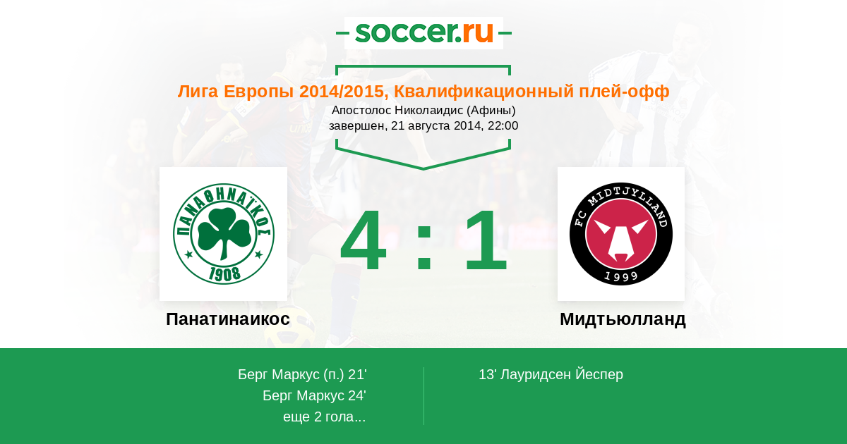 Протокол матча Панатинаикос против Мидтьюлланд