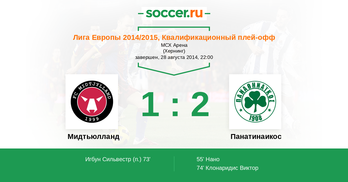 Протокол матча Мидтьюлланд против Панатинаикос