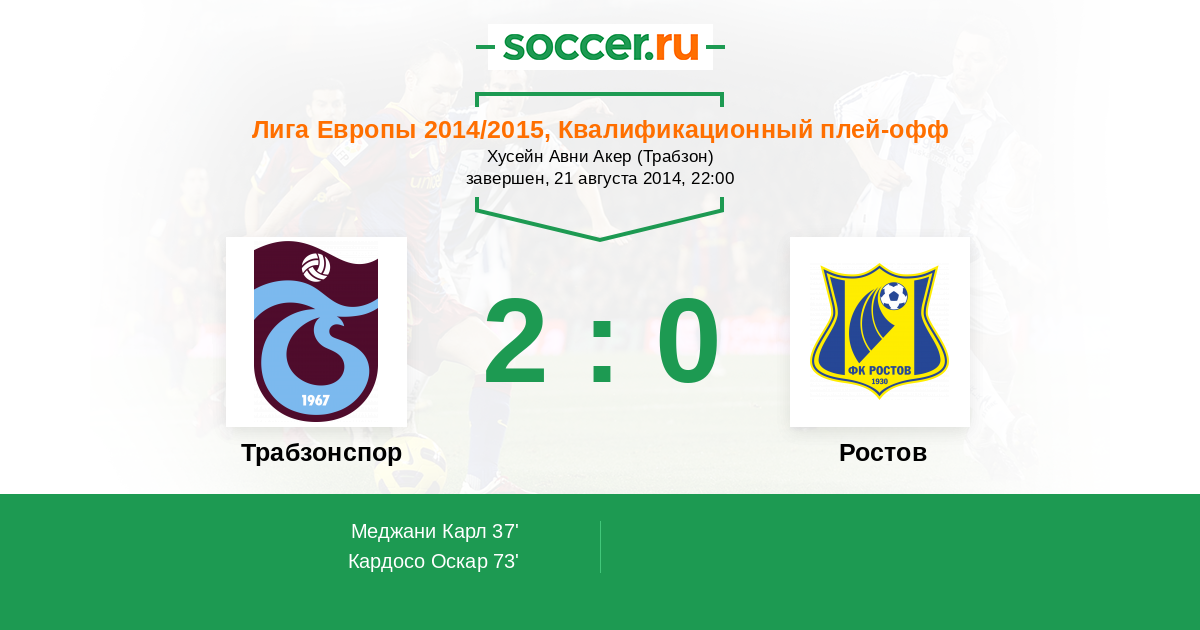 Протокол матча Трабзонспор против Ростов