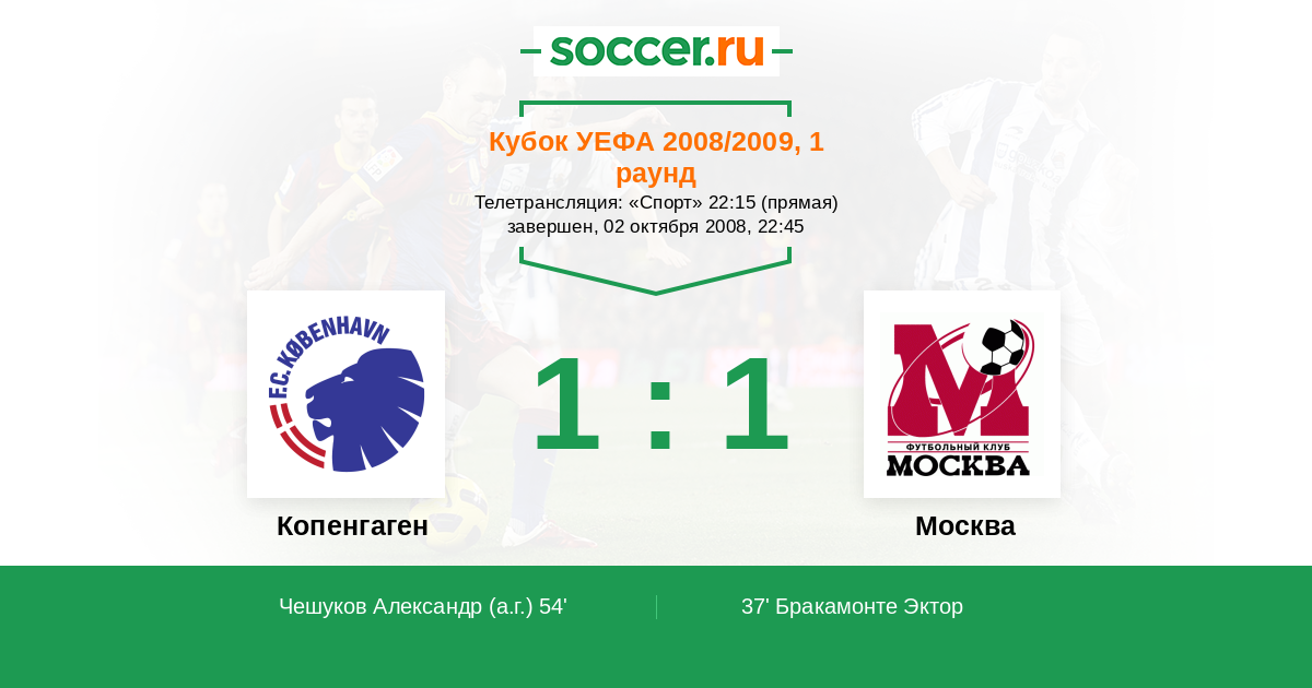 Протокол матча Копенгаген против ФК Москва