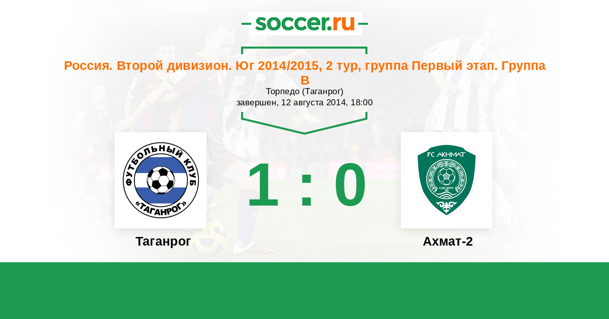 Россия. Вторая лига. Группа 1 13.10.2014 Ахмат-2 Логотип футбольный клуб Ахмат-2 (Грозный) 0:0 Логотип футбольный клуб Таганрог Таганрог