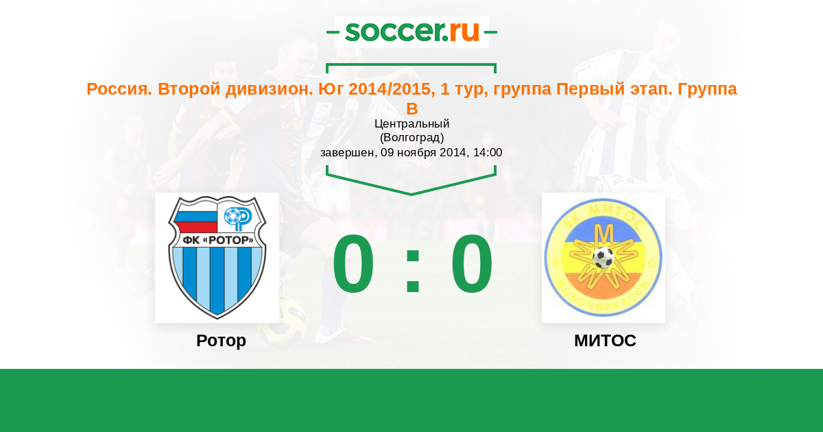 Россия. Вторая лига. Группа 1 03.04.2015 МИТОС Логотип футбольный клуб МИТОС (Новочеркасск) 0:1 Логотип футбольный клуб Ротор (Волгоград) Ротор