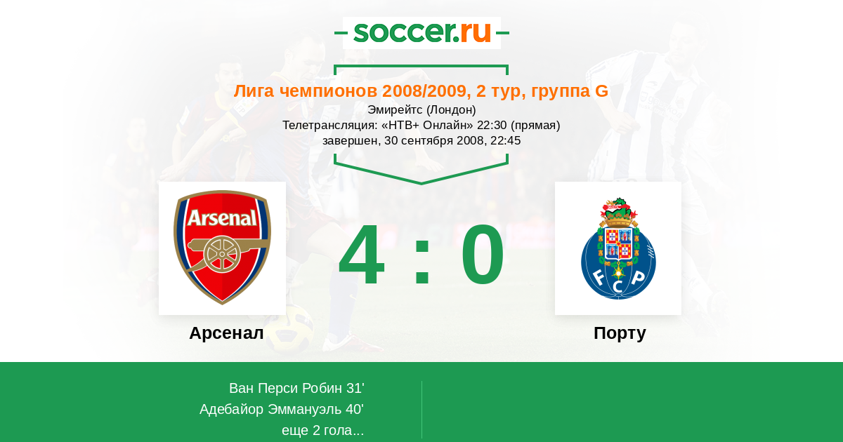Протокол матча Арсенал против Порту