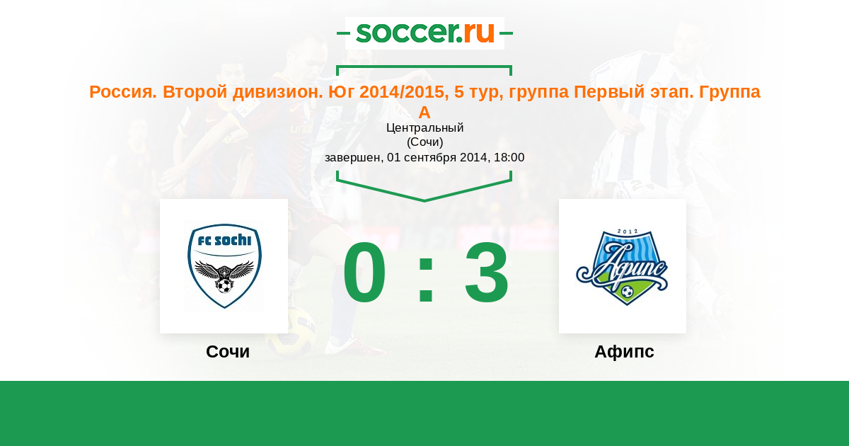Россия. Вторая лига. Группа 1 31.10.2014 Афипс Логотип футбольный клуб Афипс (Афипский) 2:1 Логотип футбольный клуб Сочи Сочи