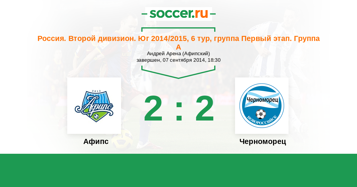 Россия. Вторая лига. Группа 1 06.11.2014 Черноморец Логотип футбольный клуб Черноморец (Новороссийск) 2:0 Логотип футбольный клуб Афипс (Афипский) Афипс