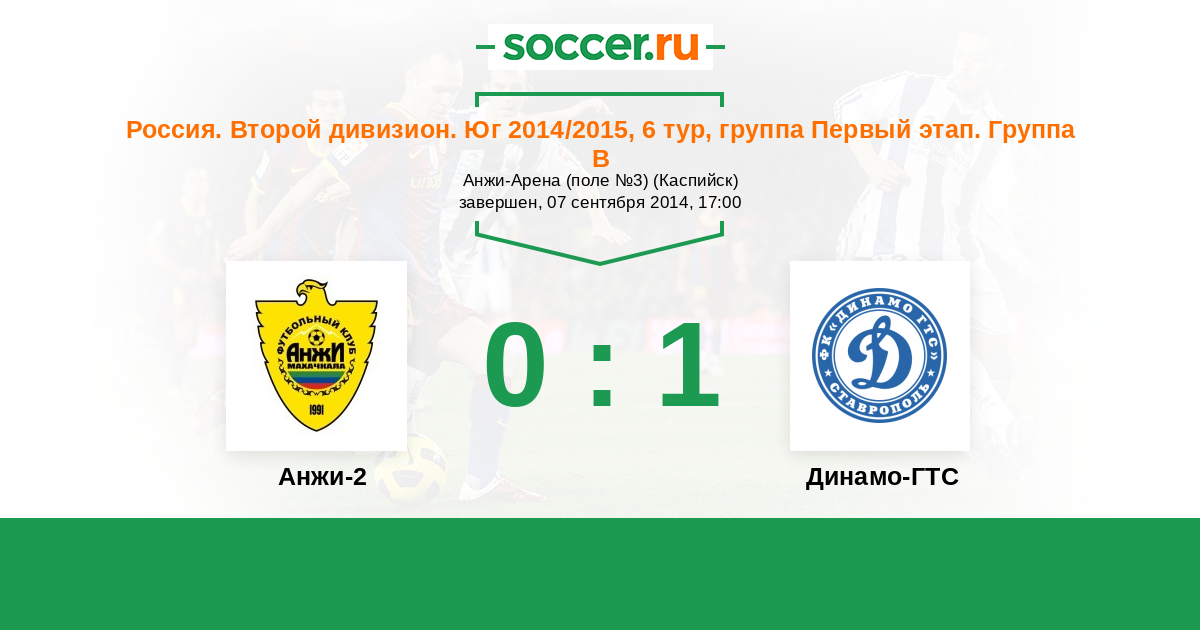Россия. Вторая лига. Группа 1 06.11.2014 Динамо-ГТС Логотип футбольный клуб Динамо-ГТС (Ставрополь) 1:0 Логотип футбольный клуб Анжи-2 (Махачкала) Анжи-2