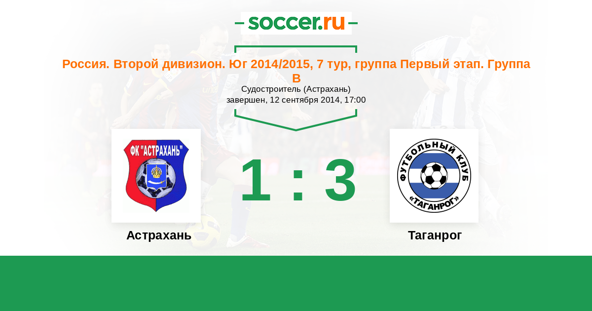 Россия. Вторая лига. Группа 1 08.05.2014 Астрахань Логотип футбольный клуб Астрахань 4:0 Логотип футбольный клуб Таганрог Таганрог