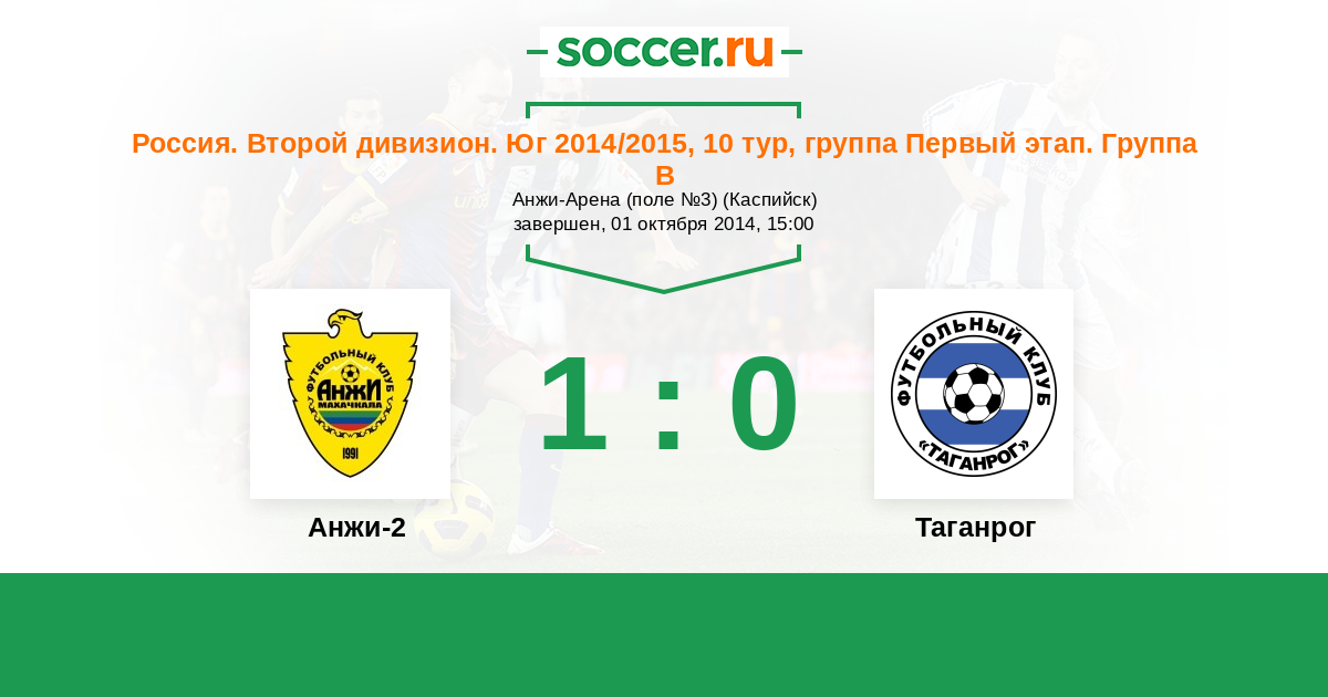 Россия. Вторая лига. Группа 1 22.03.2015 Таганрог Логотип футбольный клуб Таганрог 0:0 Логотип футбольный клуб Анжи-2 (Махачкала) Анжи-2