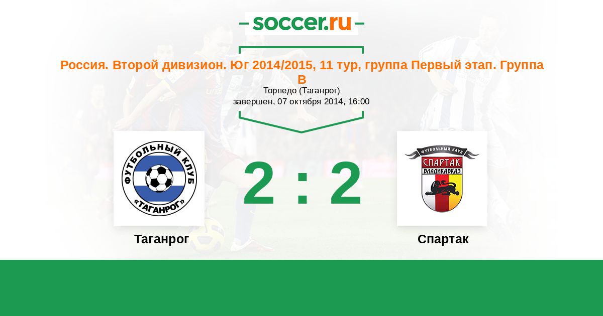 Россия. Вторая лига. Группа 1 29.05.2015 Таганрог Логотип футбольный клуб Таганрог 1:2 Логотип футбольный клуб Торпедо Армавир Торпедо Армавир