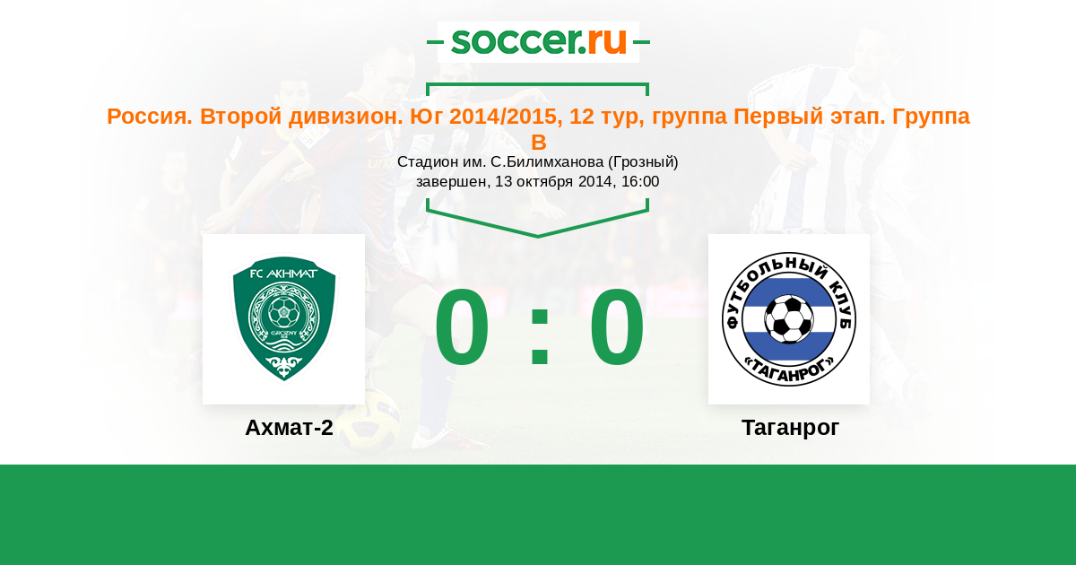 Россия. Вторая лига. Группа 1 12.08.2014 Таганрог Логотип футбольный клуб Таганрог 1:0 Логотип футбольный клуб Ахмат-2 (Грозный) Ахмат-2