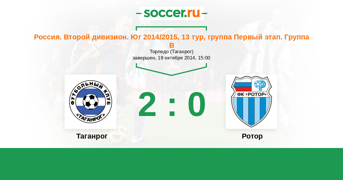 Россия. Вторая лига. Группа 1 20.08.2014 Ротор Логотип футбольный клуб Ротор (Волгоград) 1:2 Логотип футбольный клуб Таганрог Таганрог