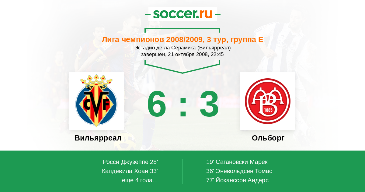 Протокол матча Вильярреал против Ольборг