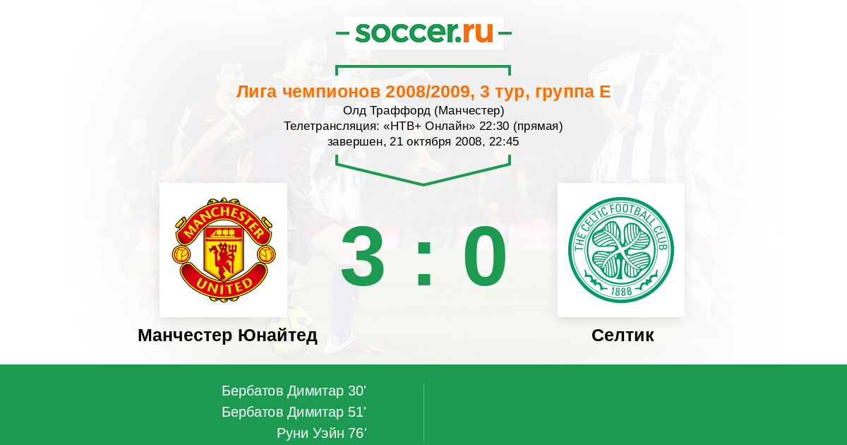 Протокол матча Манчестер Юнайтед против Селтик
