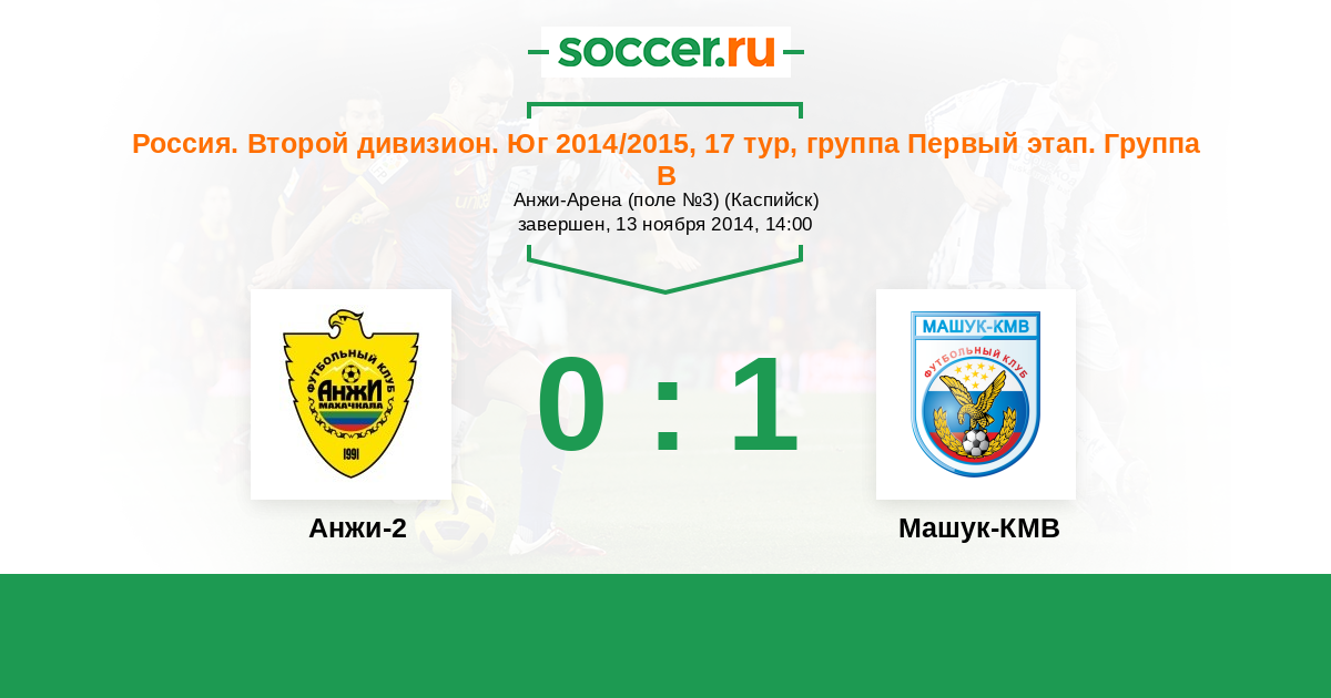 Россия. Вторая лига. Группа 1 13.09.2014 Машук-КМВ Логотип футбольный клуб Машук-КМВ (Пятигорск) 2:2 Логотип футбольный клуб Анжи-2 (Махачкала) Анжи-2