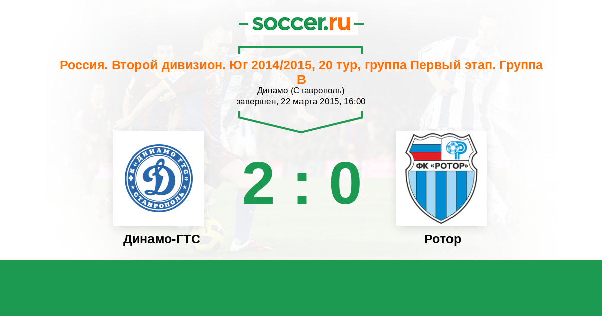 Россия. Вторая лига. Группа 1 01.10.2014 Ротор Логотип футбольный клуб Ротор (Волгоград) 0:2 Логотип футбольный клуб Динамо-ГТС (Ставрополь) Динамо-ГТС