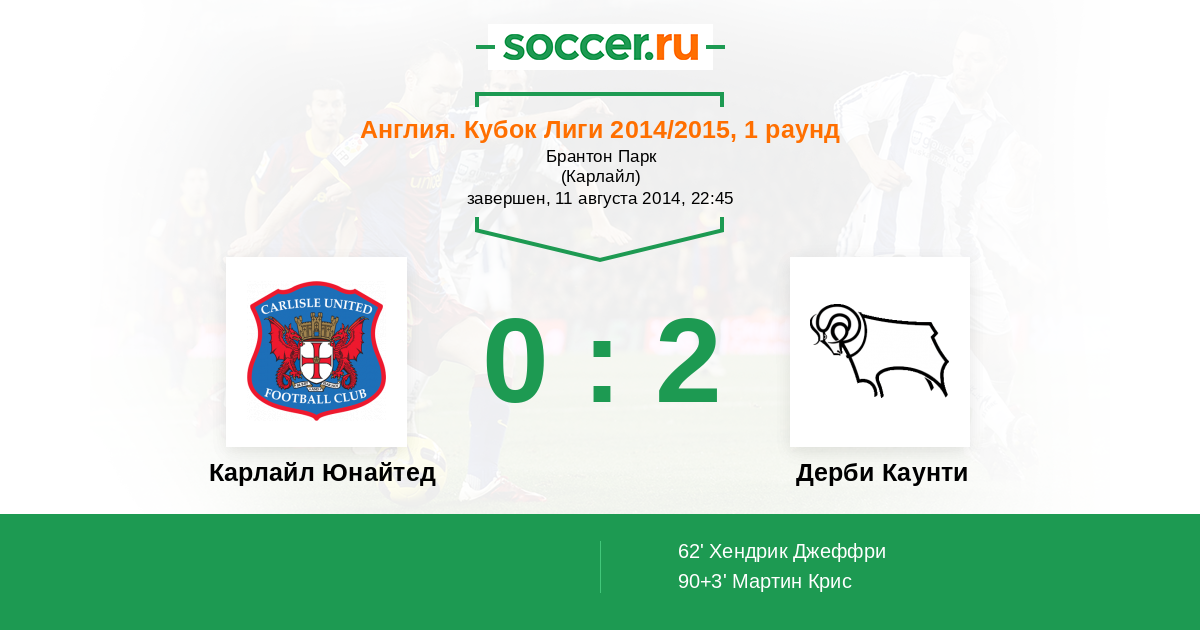Протокол матча Карлайл Юнайтед против Дерби Каунти