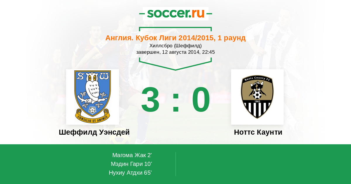 Протокол матча Шеффилд Уэнсдей против Ноттс Каунти