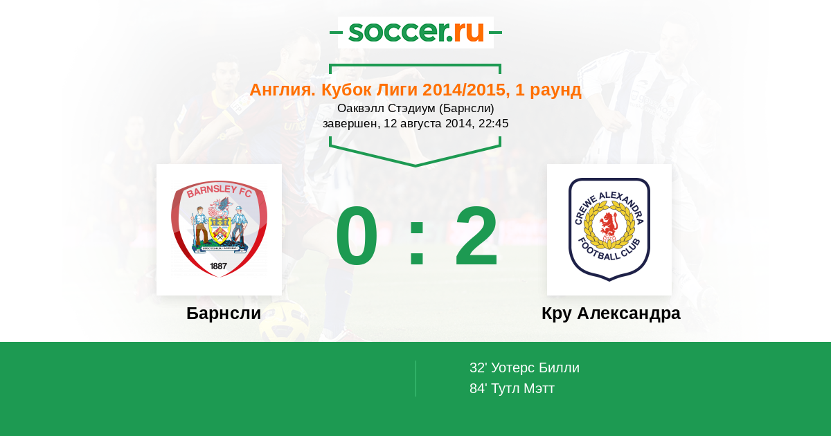 Протокол матча Барнсли против Кру Александра