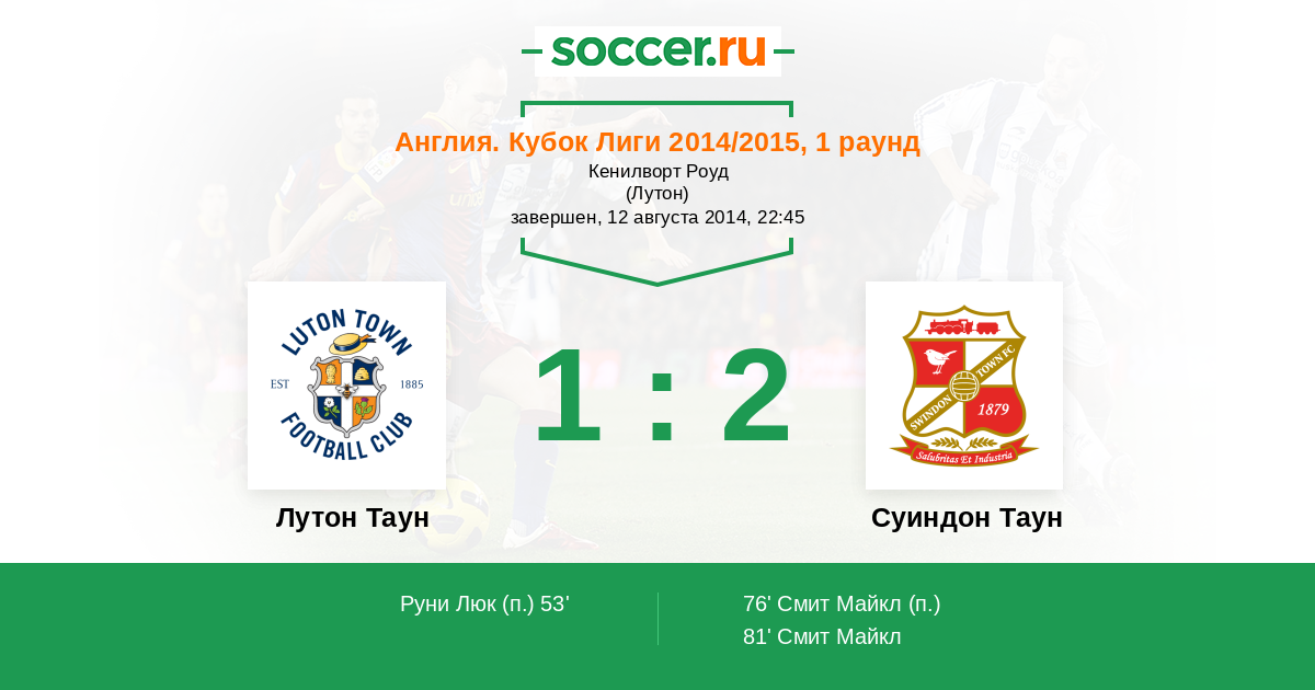 Протокол матча Лутон Таун против Суиндон Таун