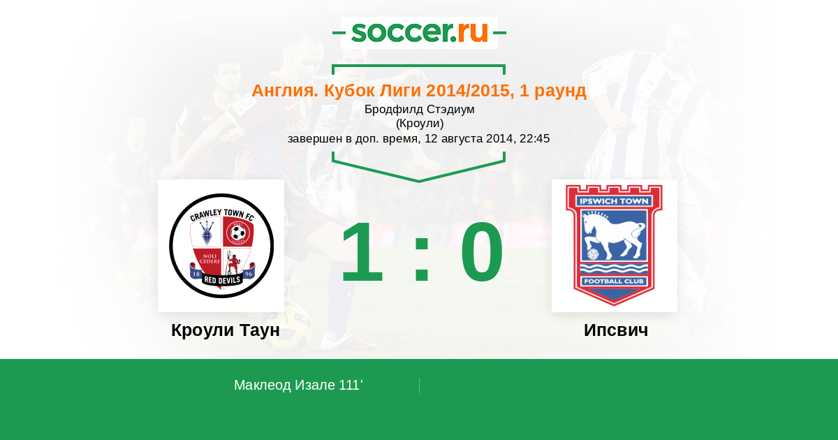 Протокол матча Кроули Таун против Ипсвич