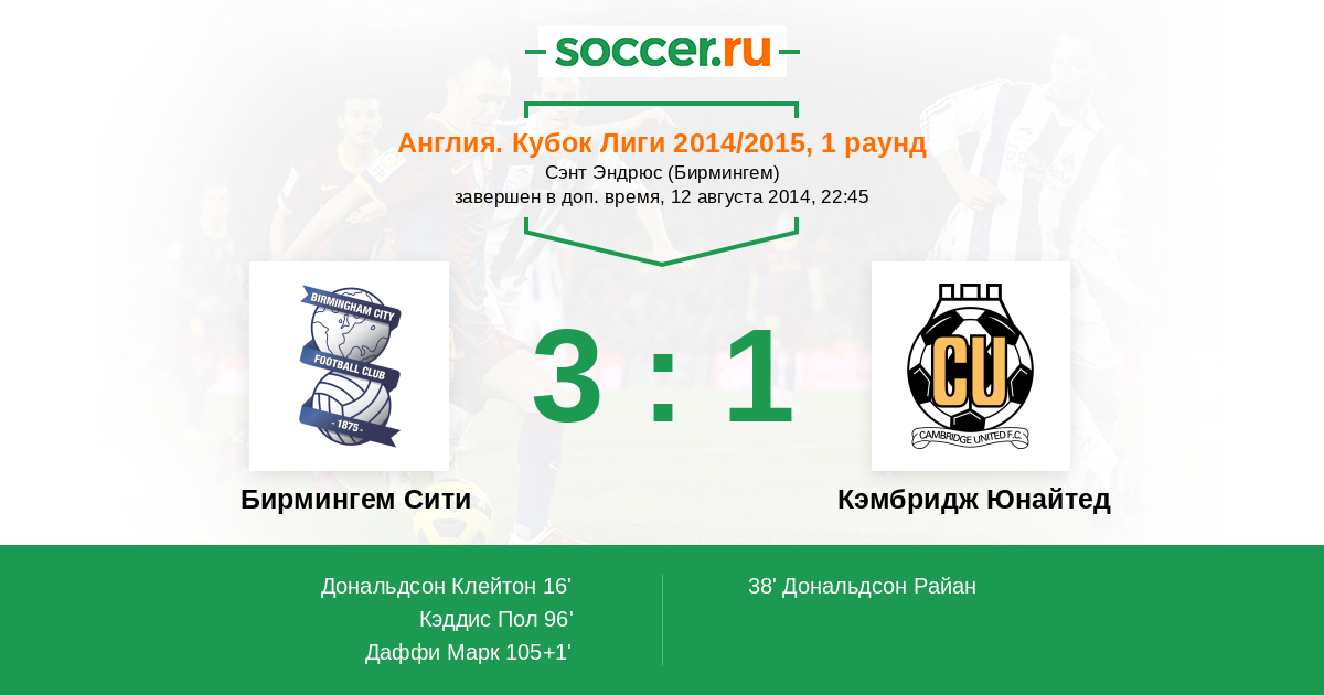 Протокол матча Бирмингем Сити против Кэмбридж Юнайтед